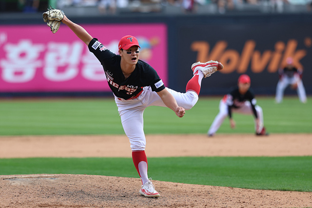 곽도규 선수는 강한 직구와 날카로운 변화구를 바탕으로 안정적인 피칭을 보여주고 있습니다.
