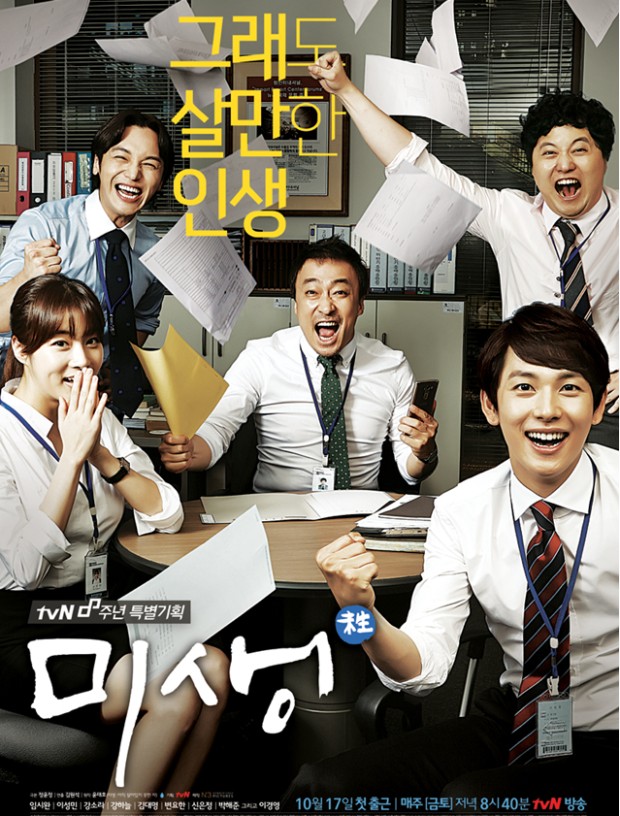 2014년 10월, tvN 8주년 특별기획 드라마로 윤태호 웹툰 작가의 <미생>을 원작으로 총 20부작으로 제작되었으며, 이 시대 모든 직장인들의 애환과 열정을 잘 보여주어 많은 시청자들로부터 큰 공감을 받았습니다. 저도 미생을 웹툰으로 처음 접했었는데, 웹툰에서 보여줄 수 없었던 따뜻한 감성과 현실에서 느낄 수 있는 여러 복잡한 감정들이 시청자들에게 그대로 이입되었고, 특히 주인공들의 독백은 시청자들을 대변하는 마음이었습니다. 이와 같은 미생 열풍은 시청률로 증명하였는데, 2014년 10월 17일 첫 방 최고 시청률은 2.8%에 그쳤으나, 12월 20일 마지막 20화 때에는 10.3%라는 엄청난 최고 시청률을 기록했으며 20부작 평균 시청률은 5.55%로, 당시 <응답하라 1994>에 이어 두 번째로 높은 시청률을 기록할 정도였으니, 그 인기가 대단했습니다. 이처럼 대단한 열풍을 몰고 온 미생은 제51회 백생예술대상에서 이성민은 최우수 연기상, 임시완은 신인상, 김원석 감독은 연출상을 수상하여 3관왕을 달성했고, 제20회 아시안 TV 어워즈에서 최고 드라마상까지 휩쓸었습니다. 그리고 그 인기는 전 세계로 뻗어나가 중국과 일본에서도 리메이크로 제작되어 큰 흥행을 이끌었습니다.