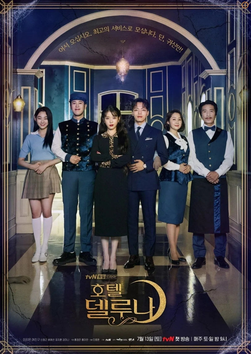 2019년 tvN에서 방영된 판타지, 로맨틱, 코미디 드라마로서 이야기는 비극적인 과거와 수많은 죄악을 짊어진 장만월(이지은)에게 자기 자신을 구원할 방법을 찾을 때까지 호텔델루나를 운영하라는 저주를 받게 됩니다. 호텔델루나 사장 장만월의 겉모습은 달처럼 고고하고 아름답지만, 속은 천년 묵은 노파처럼 쭈글쭈글 못난 성격으로 괴팍하며 변덕이 심하고 의심과 욕심, 사치가 많은 인물입니다. 매회 장만월이 입고 나오는 의상과 악세사리는 쓸쓸한 그녀의 운명을 숨기기라도 한 듯 더 화려하고 아름답습니다. 이러한 장만월 앞에 구찬성(여진구)이라는 자기 관리가 철저한 완벽주의자로서 잘난척하는 타입은 아니며 예의 바른 청년입니다. 마음이 연약하고 귀신을 무서워하지만 잘생긴 얼굴과 똑똑한 머리까지 겸비한 엘리트 호텔리어가 인간 지배인으로 들어와 호텔델루나를 함께 운영하게 됩니다. 장만월과 구찬성은 호텔델루나에 찾아오는 죽은 영혼들을 도우며 산 자와 죽은 자를 초월한 독특한 유대감을 형성합니다. 또한 죽은 영혼들은 자신만의 사연을 갖고 이곳에 머물면서 매회마다 벌어지는 사건 등을 통해 복수심과의 만남, 초자연적인 존재와의 대결, 끊임없는 구원 등의 수많은 도전에 직면하게 하면서 삶과 죽음, 구원 등을 다시 한번 생각하게 합니다. 또한 인간적인 이야기와 감정선들을 섬세하게 표현하며 빠른 전개가 지루하지 않고 동화 같은 대사와 완벽한 배경음악까지 잘 어우러져 시청자들의 마음을 사로잡았습니다.