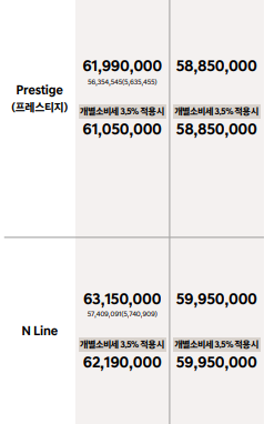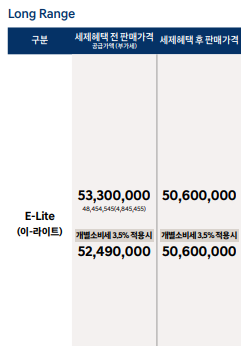 - 롱 레인지 AWD 모델: 5,300만 원대(보조금 적용 시)