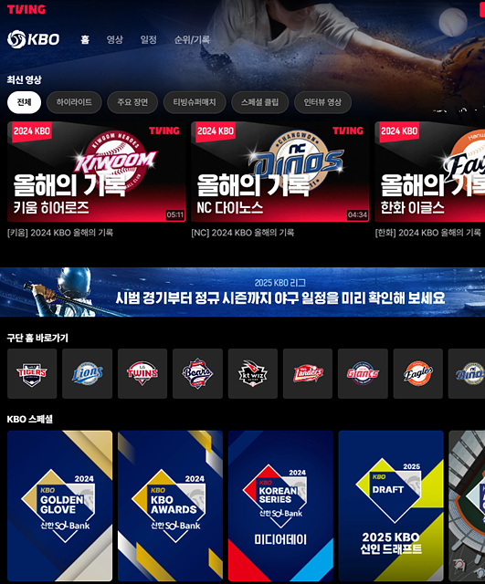 CJ ENM의 OTT 플랫폼인 티빙은 2024년부터 2026년까지 KBO 리그 유무선 중계권 우선협상대상자로 선정되었습니다. 티빙을 통해 프로야구 경기를 실시간으로 스트리밍 됩니다.