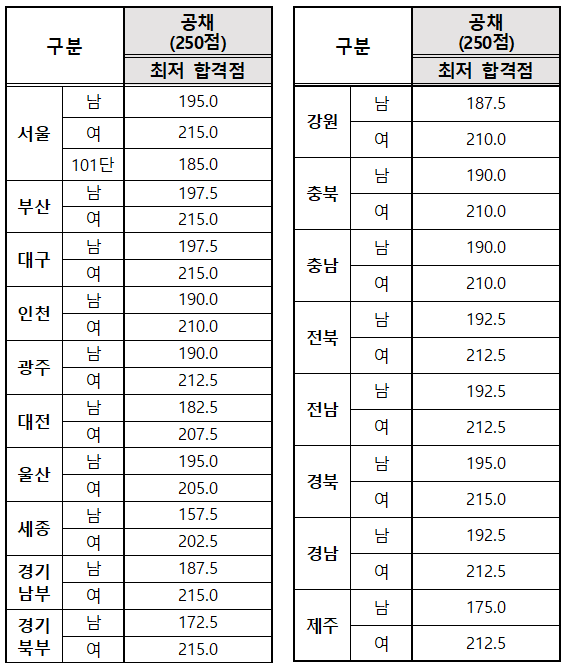 ◈ 2024년 합격선(커트라인)